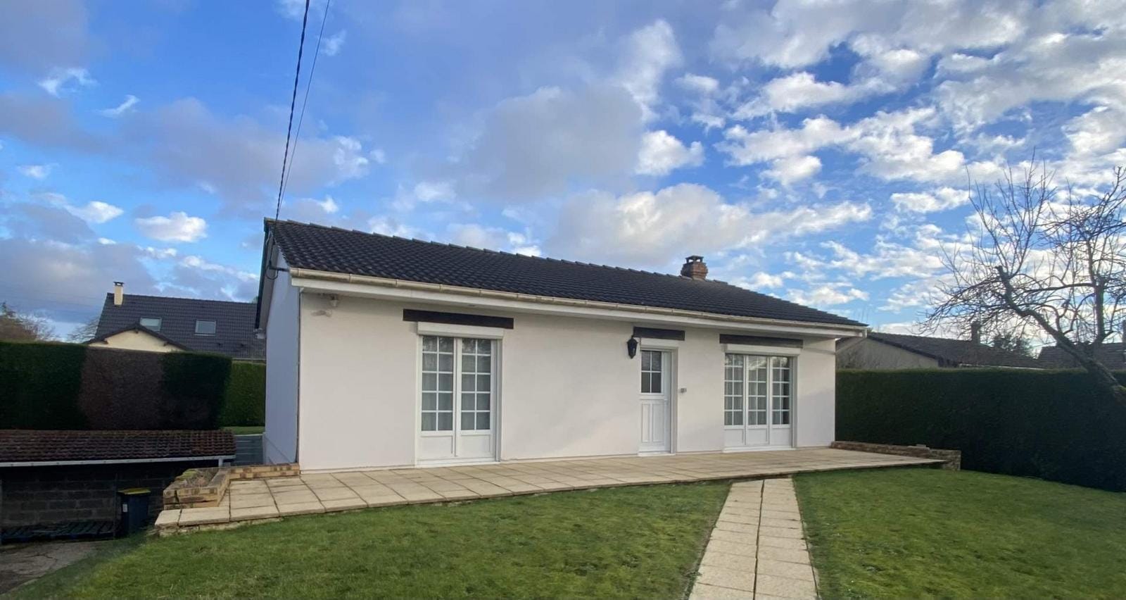 MARTAINVILLE EPREVILLE- EN EXCLUSIVITE – Maison d’habitation – Pavillon indépendant de plain-pied, édifié sur un sous-sol complet et divisé en : entrée, cuisine aménagée et équipée, séjour salon (cheminée insert), WC, salle de douches, deux chambres et une véranda en arrière de la maison.