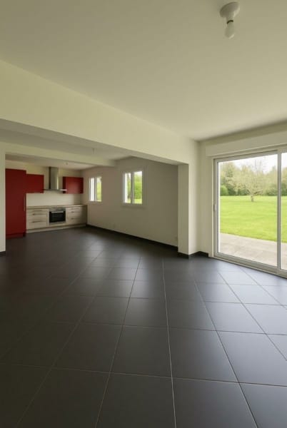A deux minutes du centre-ville de Boos, cette maison individuelle de plain-pied rénovée en 2017 s’élève sur une parcelle entièrement close d’environ 1 745 m². L’accès de plain-pied et l’agencement des espaces permettent de circuler aisément dans l’ensemble du logement, y compris pour les personnes à mobilité réduite. L’entrée accueille un placard de rangement, ouvrant sur une pièce principale d’environ 58 m², comprenant un espace salon ainsi qu’une cuisine aménagée et équipée. Un couloir distribue la partie nuit, composée de trois grandes chambres, d’une salle d’eau avec WC, ainsi que d’un WC indépendant. Une buanderie ajoute à la fonctionnalité de l’ensemble. À l’extérieur, un garage accolé en ossature bois d’une belle surface complète le bien, ainsi qu’une terrasse prolongeant agréablement la maison. Le terrain, entièrement clos, offre différentes possibilités d’aménagement. Côté équipements, la maison bénéficie d’un chauffage par radiateurs électriques récents et poêle à bois, de menuiseries en double vitrage avec oscillo-battant, de volets roulants électriques, d’une ventilation double flux et d’un adoucisseur d’eau. L’installation électrique est conforme, et le diagnostic de performance énergétique est classé en catégorie C.