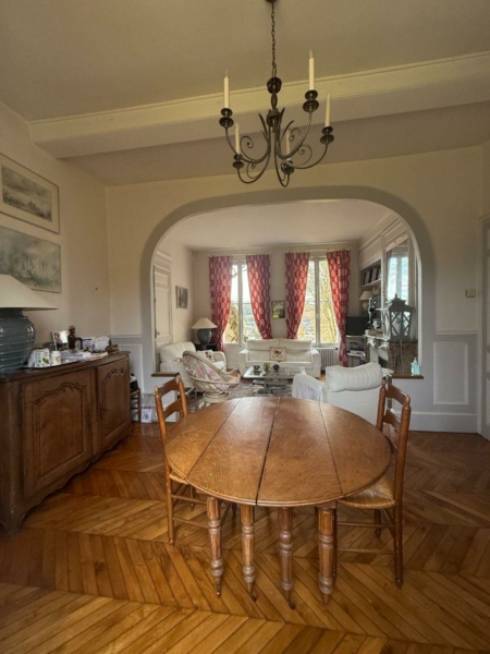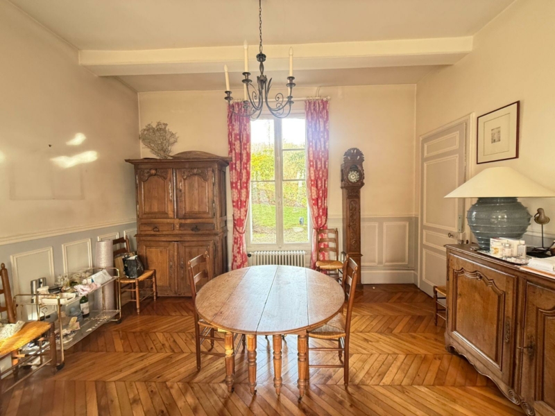 Maison bourgeoise – Vente – Ry Située à Ry (Seine-Maritime), cette maison bourgeoise de la fin du XIXe siècle propose une surface habitable d’environ 252m² sur un parc de près de 2hectares. Édifiée sur trois niveaux, elle comprend: Au rez-de-chaussée: un vestibule, un salon de réception, une salle à manger, un petit salon, une cuisine traversante avec terrasse attenante, une arrière-cuisine, un dégagement et un escalier. Au premier étage: trois chambres, une salle d’eau attenante à une chambre, une salle de bains, un cabinet de toilette, de grands espaces de rangement. Au second étage: quatre chambres supplémentaires et un cabinet de toilettes avec WC. La maison dispose d’un sous-sol complet comprenant une cave à vin voûtée en briques, une chaufferie et une buanderie. Plusieurs dépendances sont présentes, incluant un ancien logement de jardinier avec cuisine, chambres et grenier, des espaces d’écurie, une petite étable, un poulailler, un bûcher et des garages. Le parc arboré est composé d’arbres classés et de herbages attenants à la propriété. L’ensemble bénéficie d’une exposition sud, d’un environnement calme sans vis-à-vis et d’une vue sur le village de Ry. Travaux de restauration à prévoir. Toiture entièrement refaite. Prix de vente: 640000EUR net vendeur Honoraires de négociation: 20000EUR Visite au 06 03 25 44 29 – Visite possible le dimanche matin sur rendez-vous.